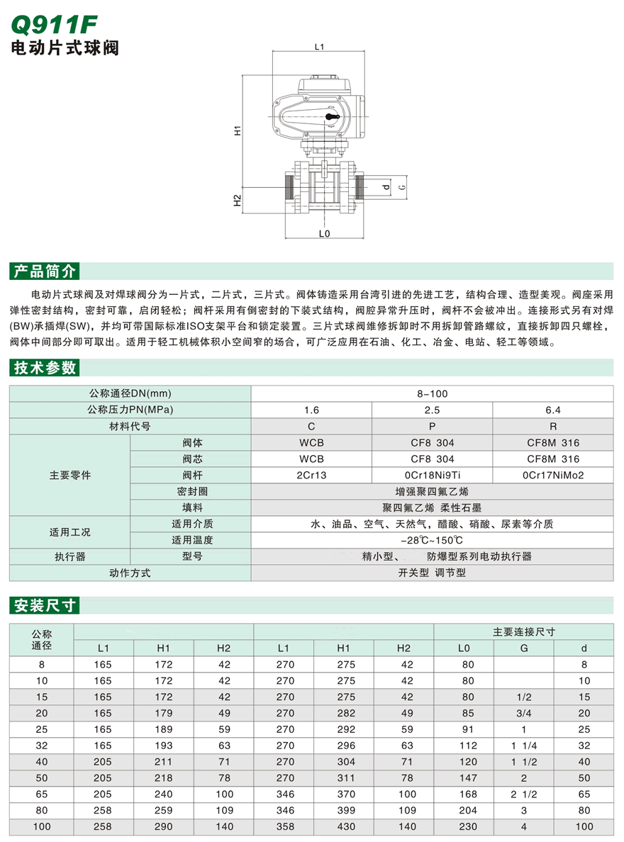 電動三片式球閥Q911F